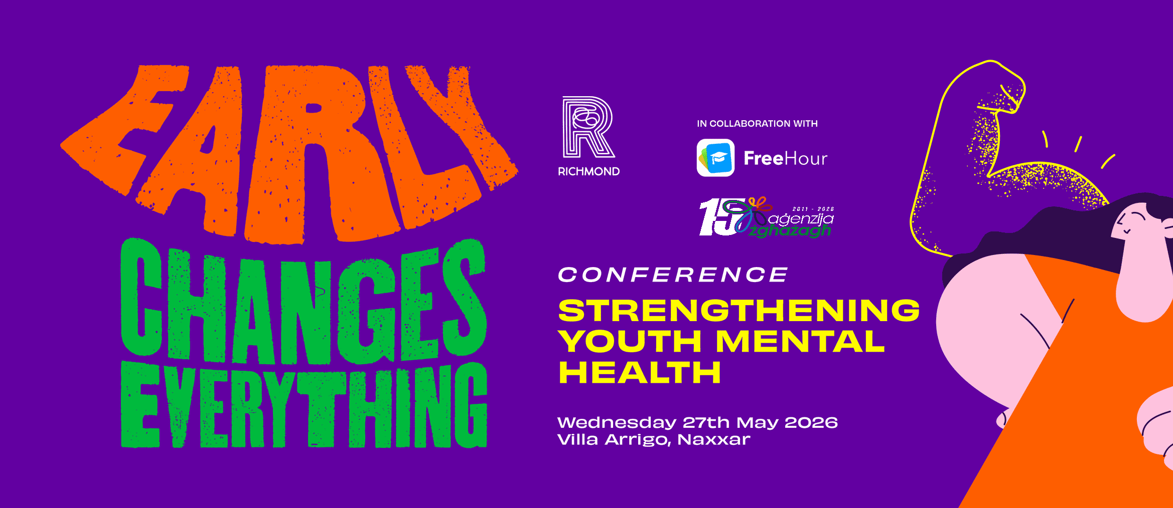 Richmond Foundation, in collaboration with Aġenzija Żgħażagħ and Free Hour, invites you to Early – Changes Everything. Strengthening Youth Mental Health — a conference dedicated to strengthening youth mental health in Malta through early intervention, practical support, and clear pathways to help.